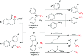 This review highlights recent developments in the direct introduction of a trifluoromethyl group into organic compounds with Umemoto's reagents