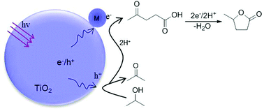 Hydrogenative cyclization of levulinic acid into [gamma]-valerolactone by photocatalytic intermolecular hydrogen transfer